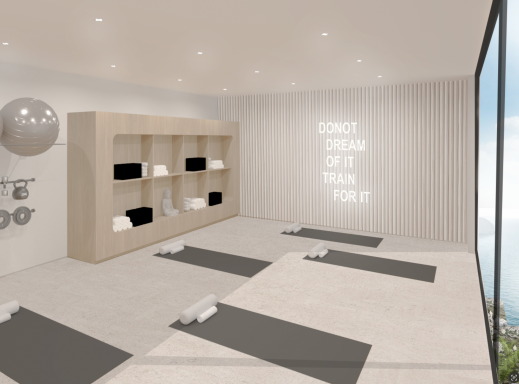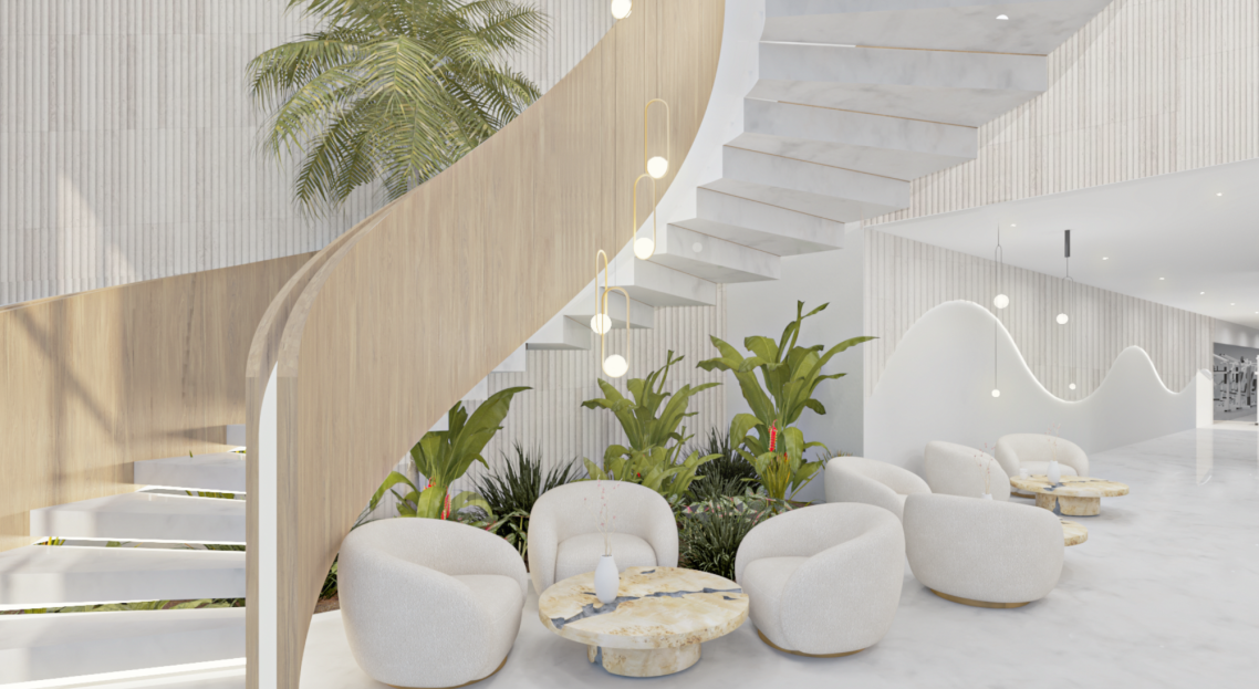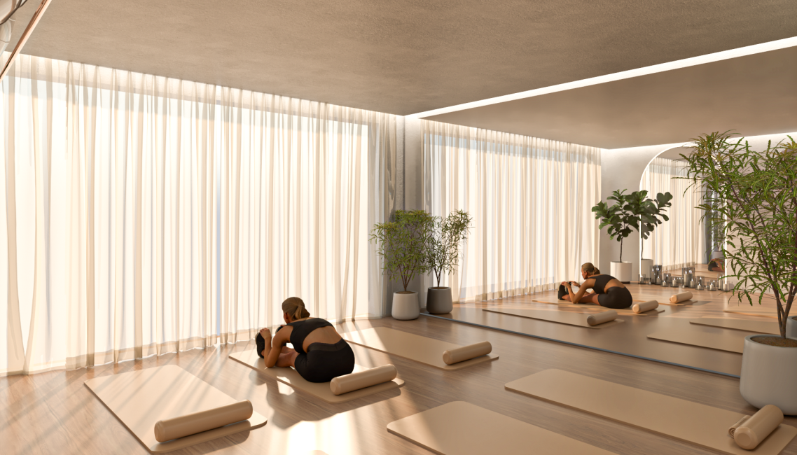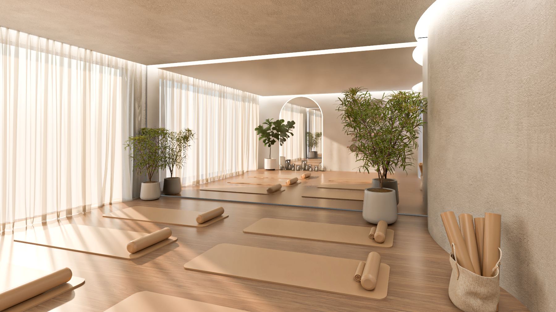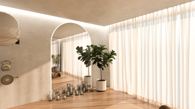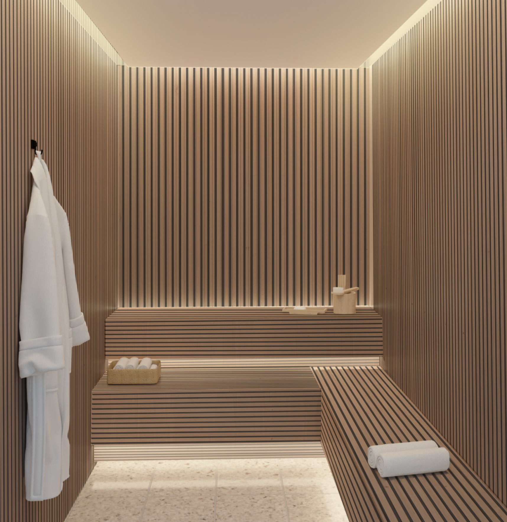 Ce projet de salle de sport haut de gamme a été conçu comme une expérience globale, alliant performance, bien-être et élégance. L’espace s’organise autour de différentes zones, fitness, pilates, récupération et sauna, pour offrir un parcours fluide et immersif.