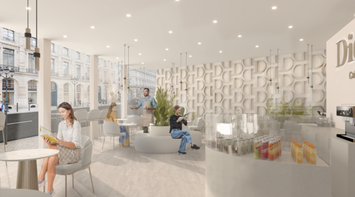 Ce concept de café à Paris a été imaginé comme une expérience immersive, alliant élégance, raffinement et identité de marque. L’espace s’articule autour d’ambiances délicates, où matières, lumière et détails créent une atmosphère à la fois chic et intemporelle.